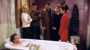 חברים 2 החבר'ה באים לבקר את מרסל באתר הצילום וצ'נדלר פוגש שם מאפרת שלמדה אתו בביה''ס היסודי. מוניקה רואה באתר הצילום את ז'אן קלוד ואן דם ומתה להתחיל אתו, אבל מתביישת. כ' עב. (שח)